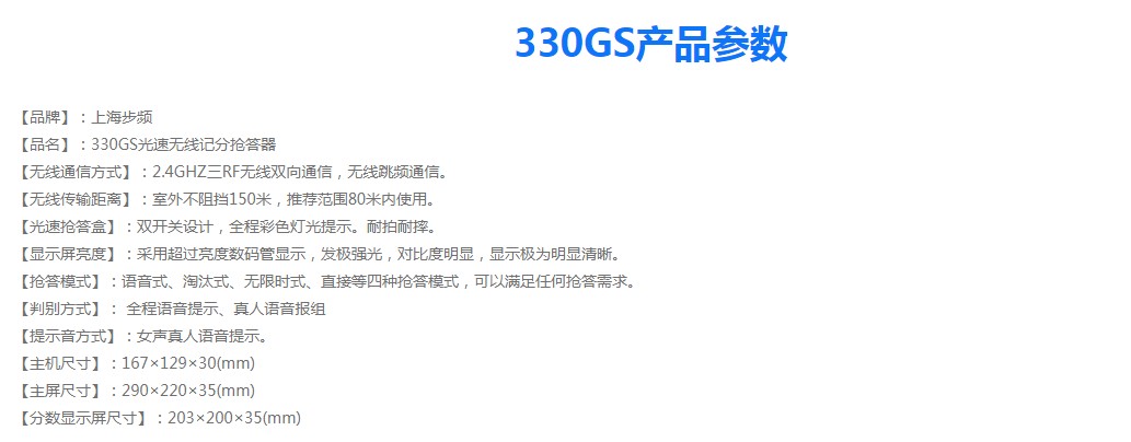 名称:330GS无线光速记分抢答器