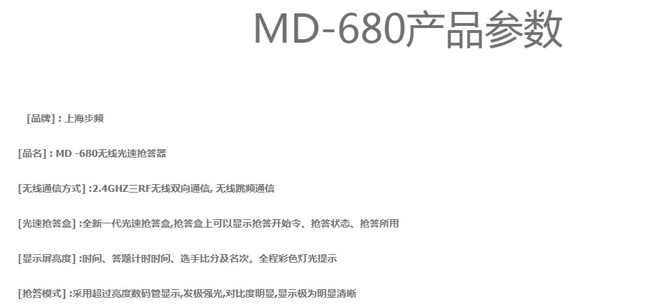 名称:MD-680无线光速抢答器